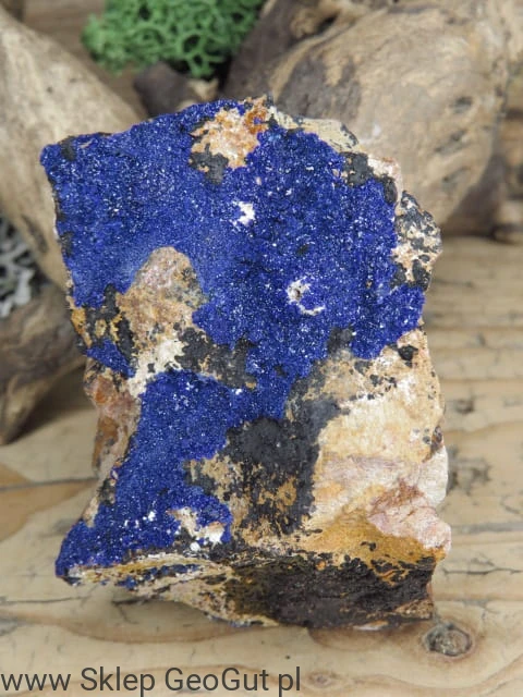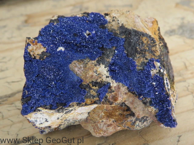 Okaz drobnokrystalicznego azurytu o intensywnej barwie. Kamień w naturalnej formie, nieszlifowany.