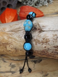 Bransoletka spleciona z czarnych sznureczków w modnym stylu metodą makramy.