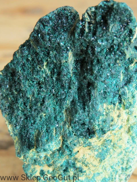 Okaz pochodzi z Maroka, z lokalizacji znanej wśród kolekcjonerów z występowania minerałów miedzi. To doskonała propozycja dla osób interesujących się mineralogią, geologią i naturalnymi okazami o wyrazistej kolorystyce.