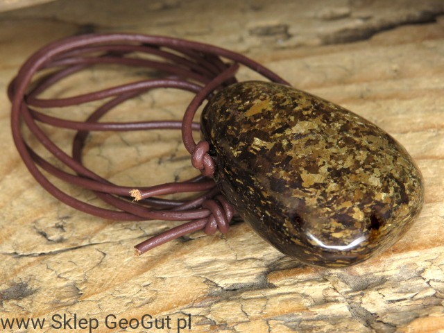 Wisior z bronzytu na regulowanym rzemieniu