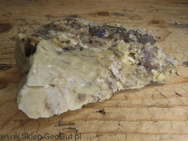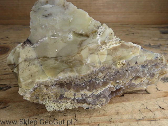 Chalcedon i opal z Jawy to naturalny okaz minerału kolekcjonerskiego o ciekawym zestawieniu struktur i barw. Dodatkową cechą okazu jest fluorescencja chalcedonu, widoczna w świetle UV o długości fali 365 nm UV-A, co czyni go jeszcze bardziej interesującym elementem kolekcji.