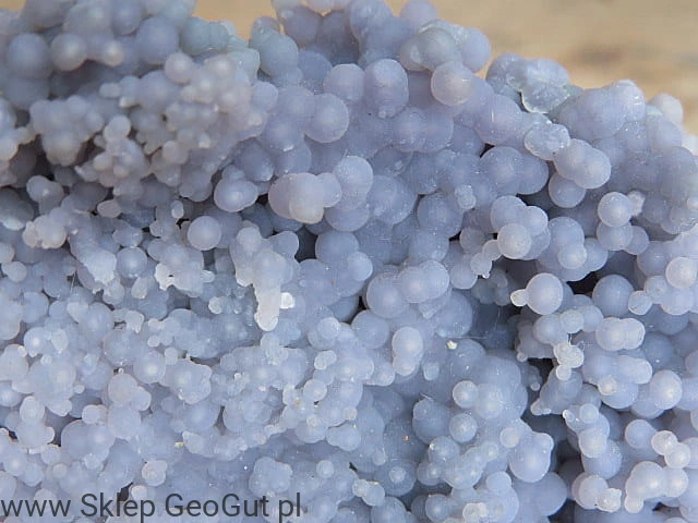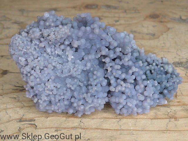 Chalcedon winogronowy o fioletowej barwie. Okaz posiada sferolity ze wszystkich stron.