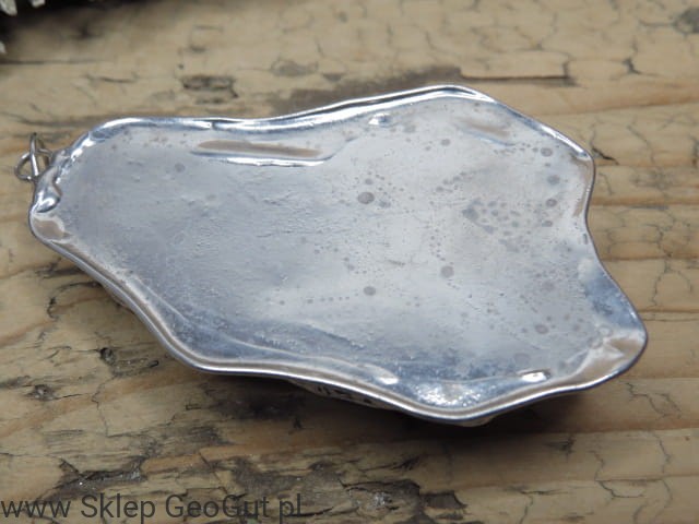 Kamień oprawiony w miedź i cynę. Zdjęcie przedstawia sprzedawany wisiorek.