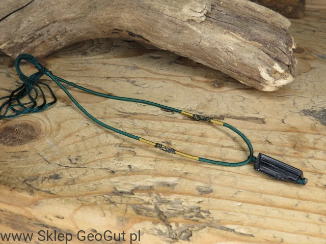 - Naszyjnik: Wykonany z zielonych i złotych sznurków, które podkreślają etniczny charakter amuletu.