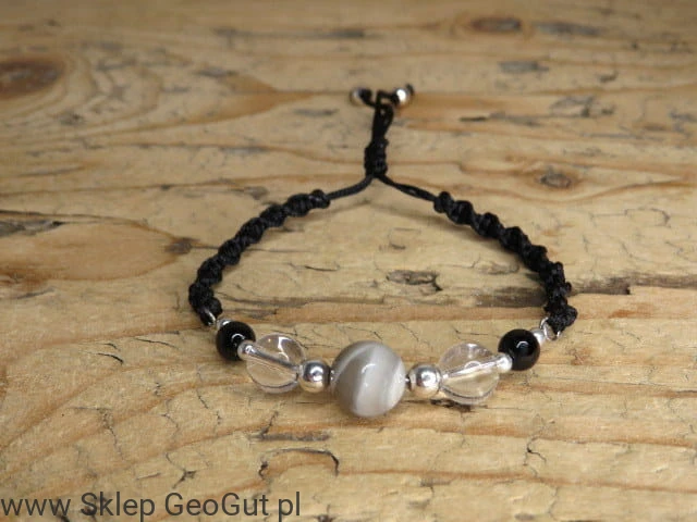 - Regulowany rozmiar: bransoletka posiada regulację za pomocą przeciąganych sznureczków, zapewniając uniwersalne dopasowanie.