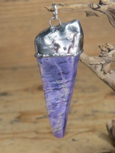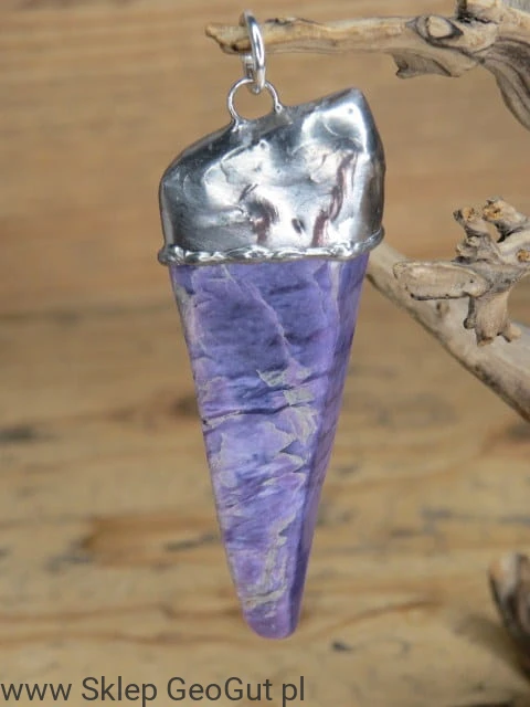 Duży wisior z naturalnego czaroitu o pięknej barwie.
