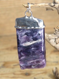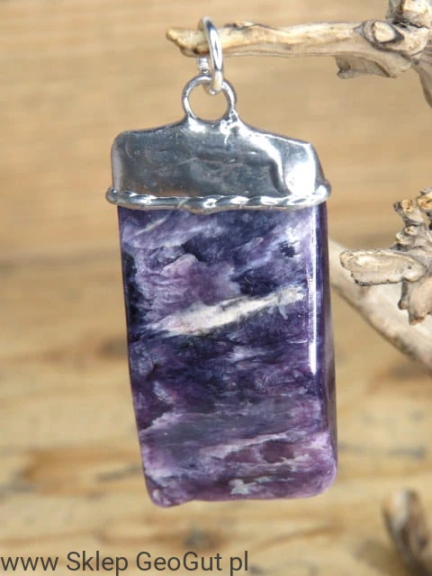 Duży wisior z naturalnego czaroitu o pięknej barwie.