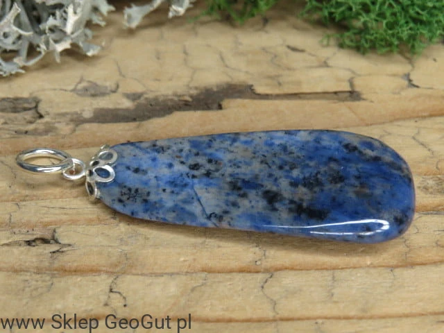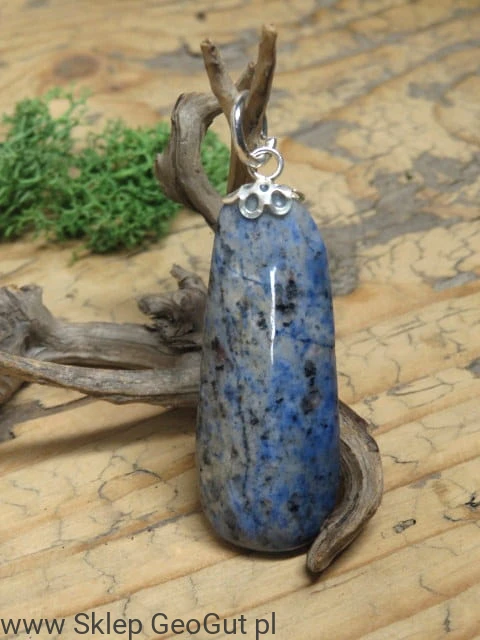 Wisior z dumortierytu. Zawieszka metalowa w kolorze srebrnym.