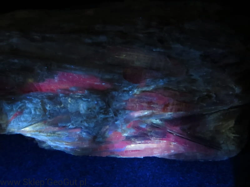 Minerał wykazuje fluorescencję w świetle UV, co dodatkowo podkreśla jego kolekcjonerską wartość.