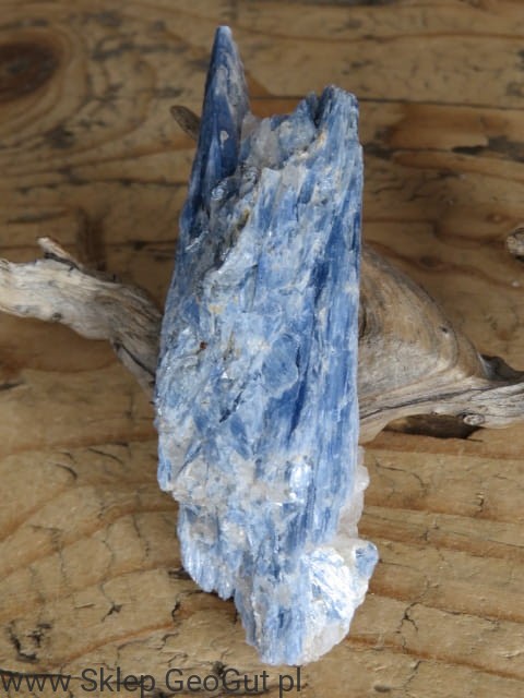 Okaz dystenu (cyjanitu) pochodzący z Brazylii o wyjątkowo ładnej, intensywnie niebieskiej barwie. Kamień naturalny, nieobrobiony, należący do gromady krzemianów – krzemian glinu.