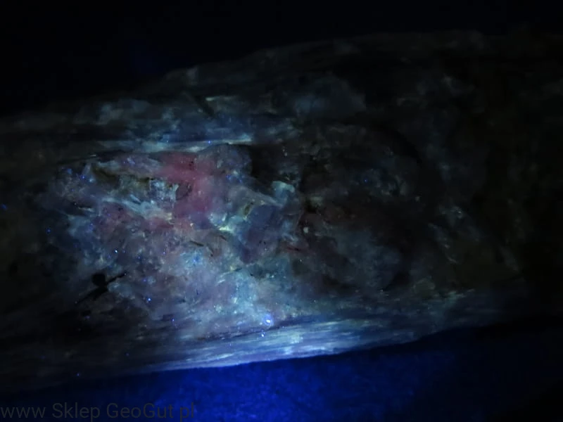 Minerał wykazuje fluorescencję w świetle UV, co dodatkowo podkreśla jego kolekcjonerską wartość.