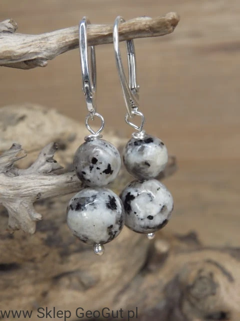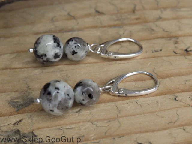 Kolczyki z granitu z Polski wykończone srebrem pr.925. Kolczyki na biglach angielskich.
