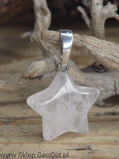 Wisiorek gwiazda z kryształu górskiego - wypolerowany.