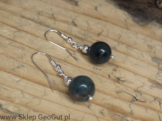 Kolczyki z heliotropu na otwartych biglach - srebrnych pr.925