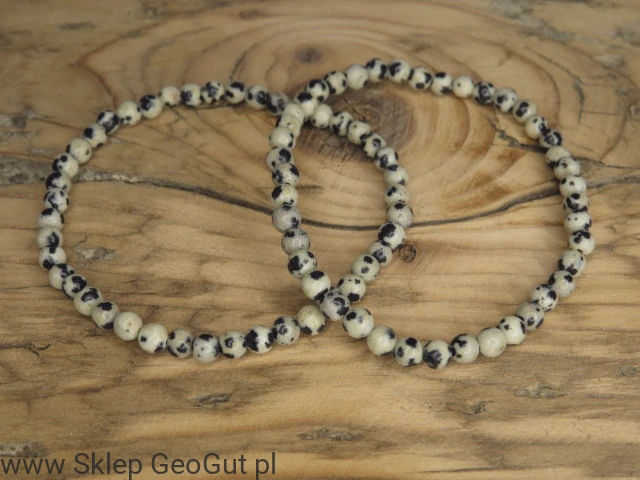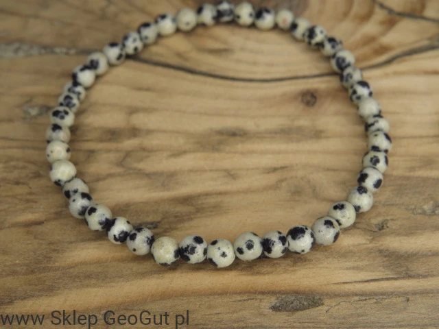 Filigranowa i subtelna bransoletka z kulek naturalnego jaspisu dalmatyńczyka.