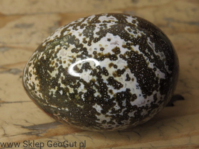 Duże jajko z jaspisu orbikularnego (oceanicznego).