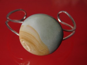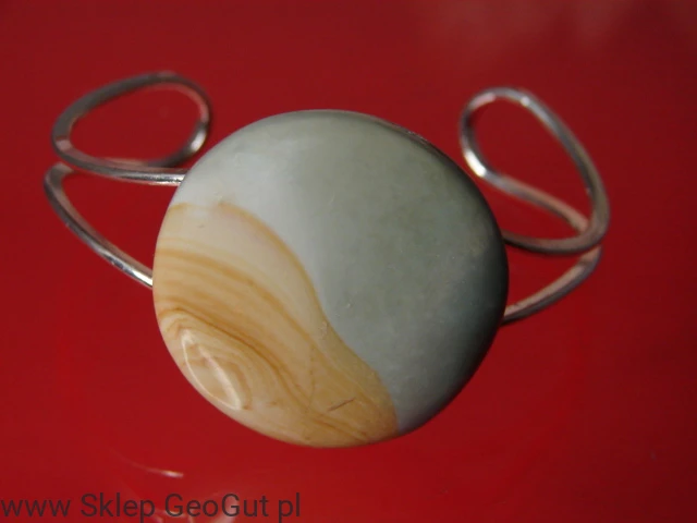 Posrebrzana bransoleta z jaspisu polichromia. Kamień wypolerowany.