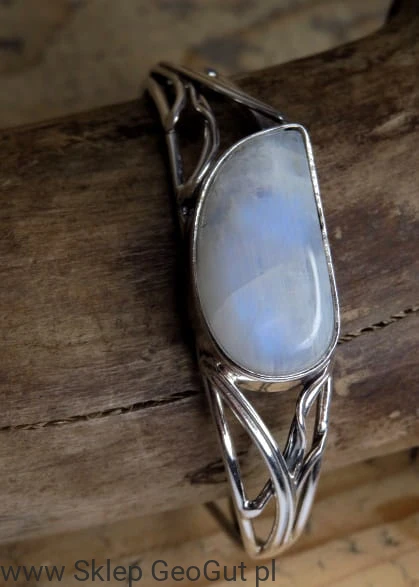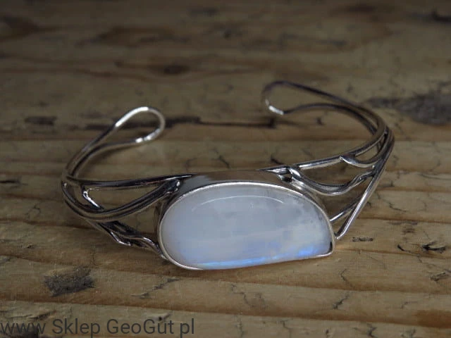 Bransoleta z naturalnego kamienia księżycowego wykonana ze srebra Ag 925.
