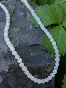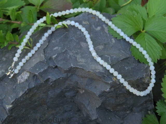 Naszyjnik z naturalnego fasetowanego białego kamienia księżycowego.