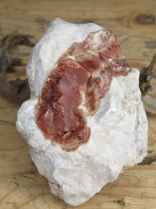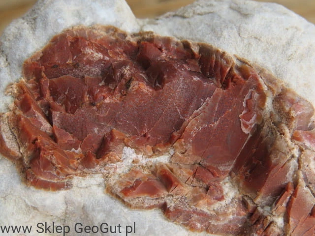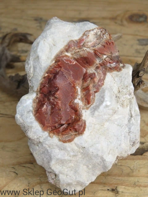 Naturalny, efektowny okaz karneolu w wapieniu pochodzący z Sudetów w Polsce. Kamień o intensywnej, ciepłej barwie w odcieniach pomarańczowo-czerwonych i rdzawych. Jego powierzchnia ukazuje naturalną strukturę i charakterystyczne przejścia kolorystyczne, które nadają mu niepowtarzalny wygląd.