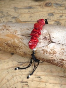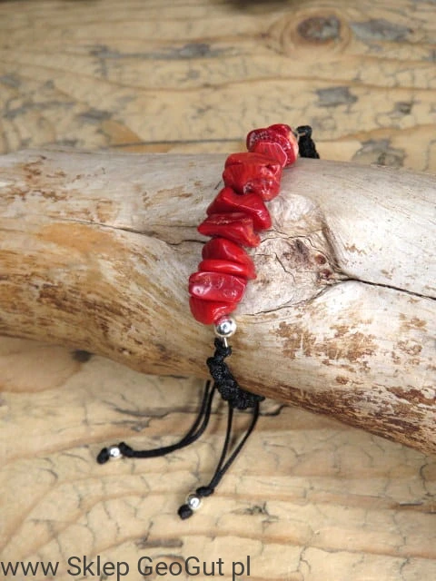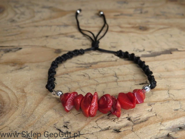 Koral czerwony - ręcznie pleciona bransoletka makrama