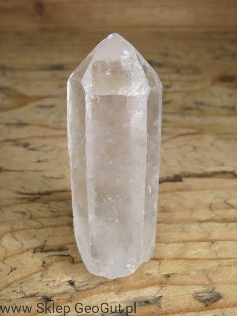 Przedstawiony na zdjęciu kryształ górski to naturalny, przezroczysty szpic pochodzący z Brazylii – kraju słynącego z wydobycia najczystszych okazów kwarcu.