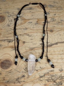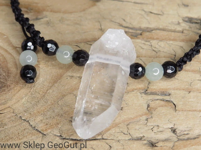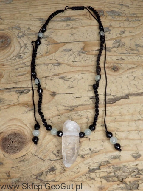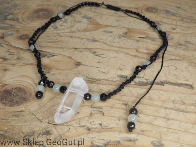 kryształ górski turmalin awenturyn * amulet ochrona i energia * naszyjnik makrama