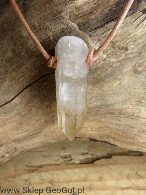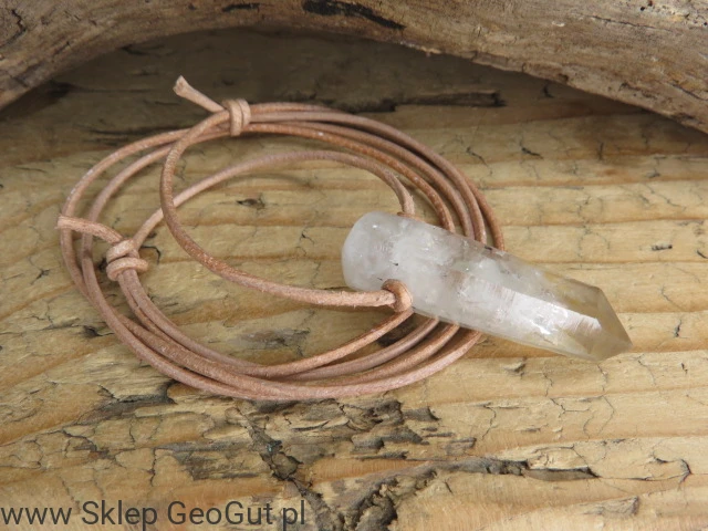 kryształ górski z fantomem - amulet na rzemieniu /gd