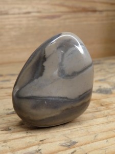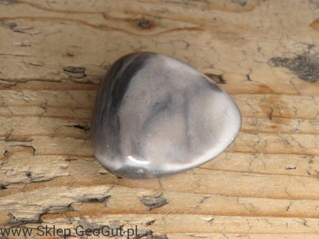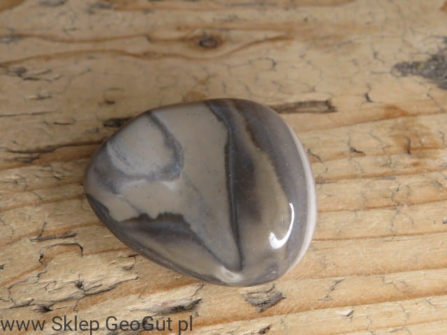 Polerowany okaz krzemienia pasiastego pochodzący z Polski, wyróżniający się wyraźnym, naturalnym wzorem. Charakterystyczne ciemne i jasne pasma (warstwy) tworzą harmonijny układ, który nadaje kamieniowi niepowtarzalny wygląd.
