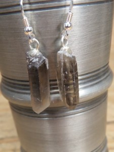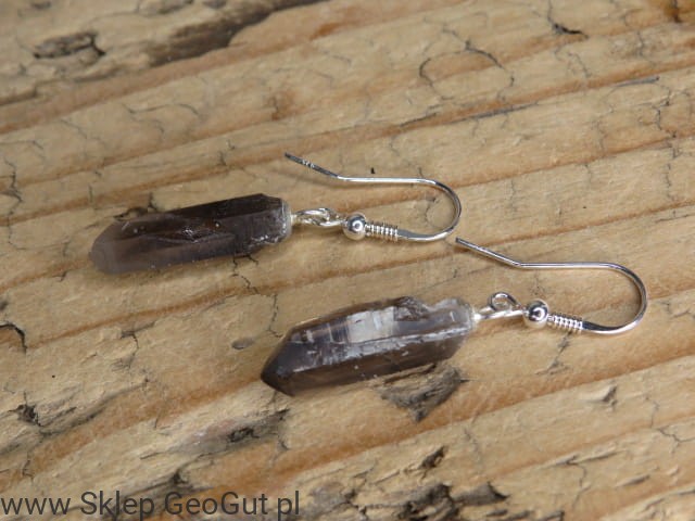 Kolczyki z naturalnych (surowych) kryształów kwarcu dymnego na otwartych biglach z serii GeoDesign.