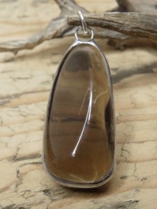 Wisiorek z naturalnego kwarcu dymnego - oprawiony w miedź i cynę.