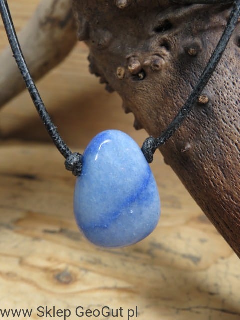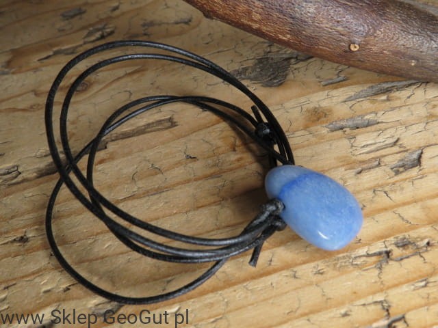 Magiczny talizman z kwarcu niebieskiego to wisior amulet z naturalnego kamienia wspierający wiarę w siebie, szczęście i witalność. Kamień przewiercony zawieszony na czarnym, skórzanym rzemyku równoważy energię, wspomaga komunikację i wyrażanie myśli. Idealny dla osób praktykujących medytację, tarot czy rozwój duchowy. Każdy wisior jest unikatowy i wykonany z naturalnego minerału.