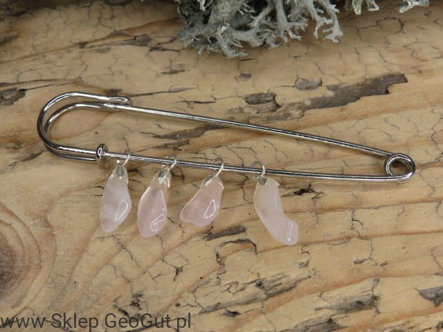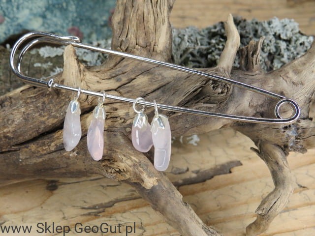 Wielka broszka agrafka z kwarcem różowym - idealna do szali i apaszek.