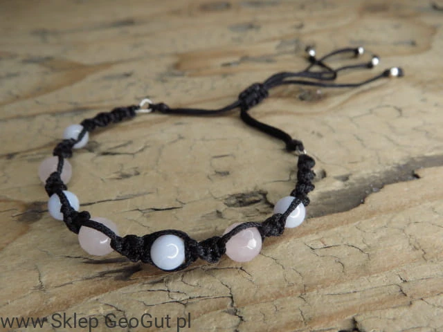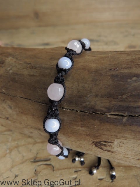 kwarc różowy i chalcedon bransoletka * czystość w miłości * makrama (1)