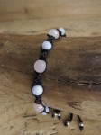 Bransoletka spleciona z czarnych sznureczków w modnym stylu metodą makramy. Kamienie na wytrzymałym drucie jubilerskim.