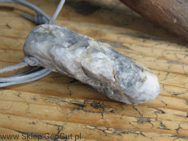 kwarc srebrzysty - Polska - amulet ochronny na rzemieniu / gd
