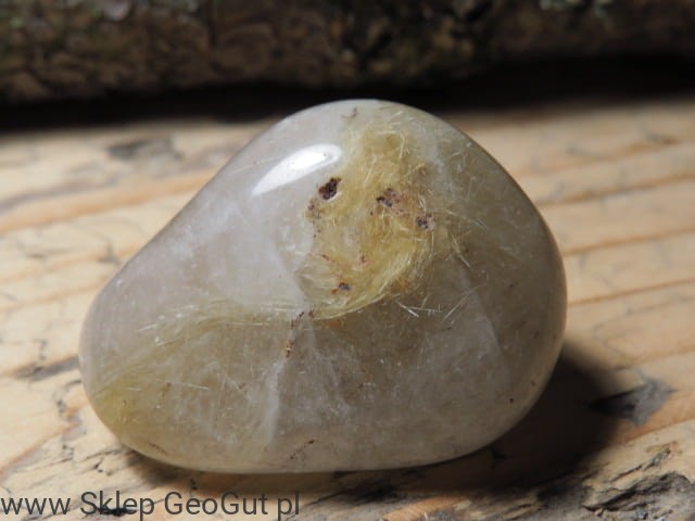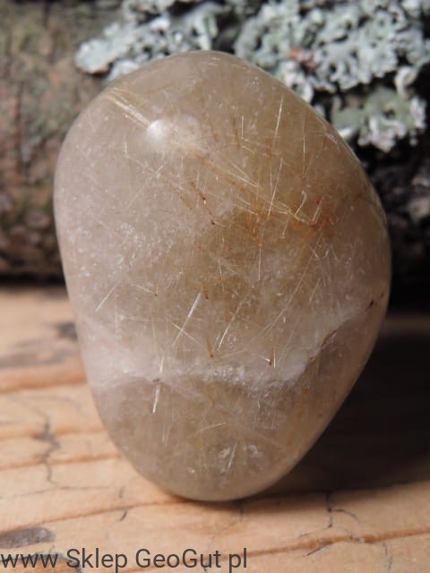 Kwarc z rutylem ("włosy Wenus", kwarc rutylowy) - wypolerowany (bębniak).