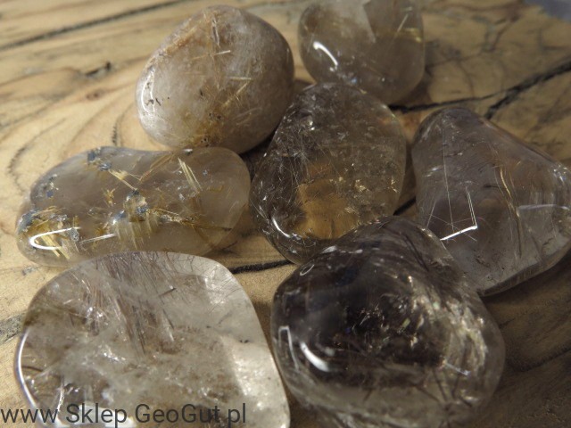 Kwarc z rutylem ("włosy Wenus", kwarc rutylowy) - wypolerowany (bębniak).