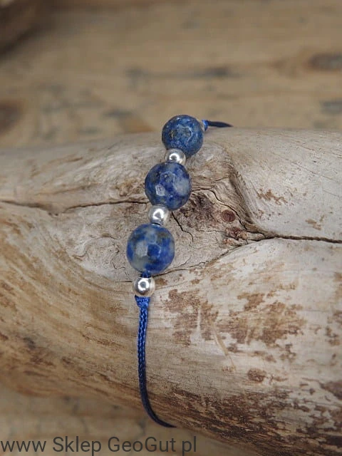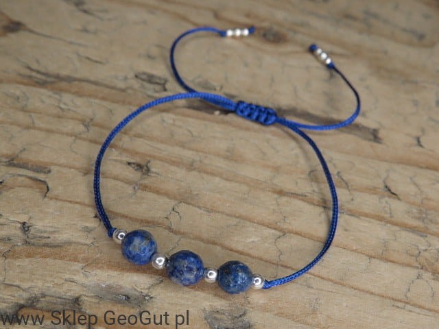 Minimalistyczna bransoleta z lapisu lazuli i kulek ze srebra Ag pr. 925.