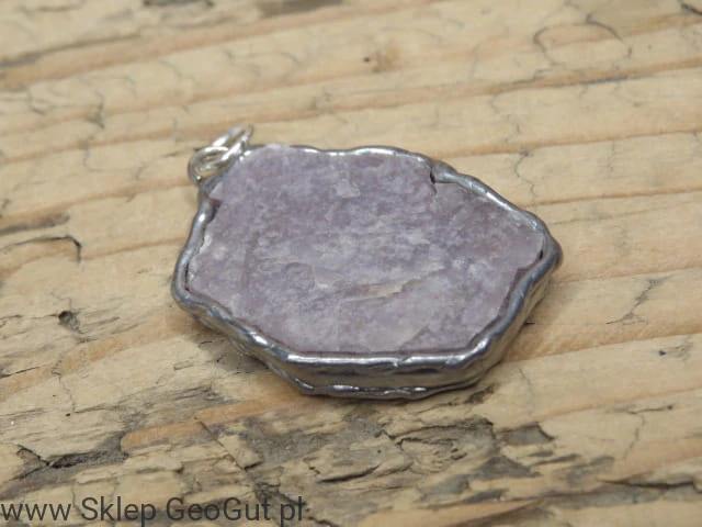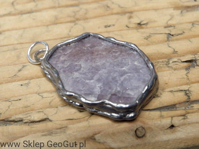 Wisior z lepidolitu w oprawie z miedzi i cyny
