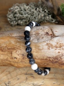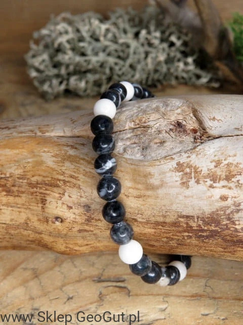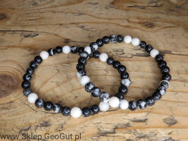 Filigranowa i subtelna bransoletka z kulek naturalnego marmuru zebra.