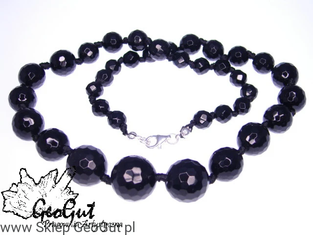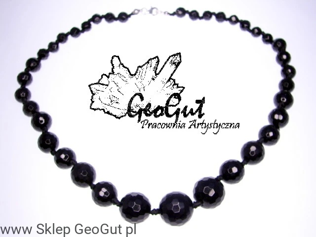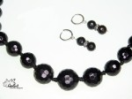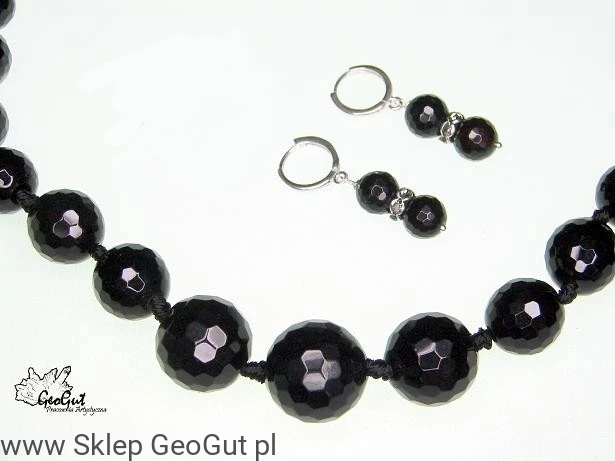 Ekskluzywny komplet biżuterii z fasetowanego obsydianu wykończony srebrem pr.925.