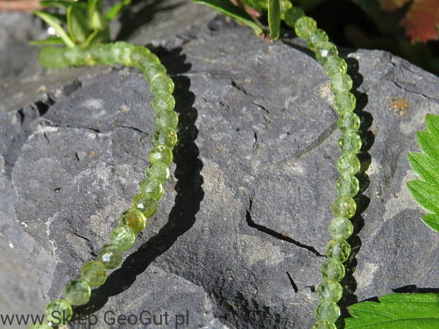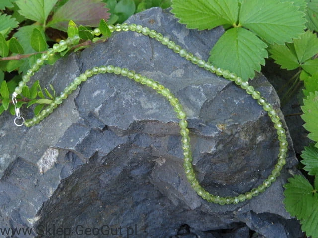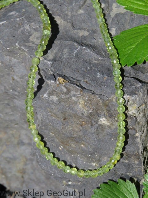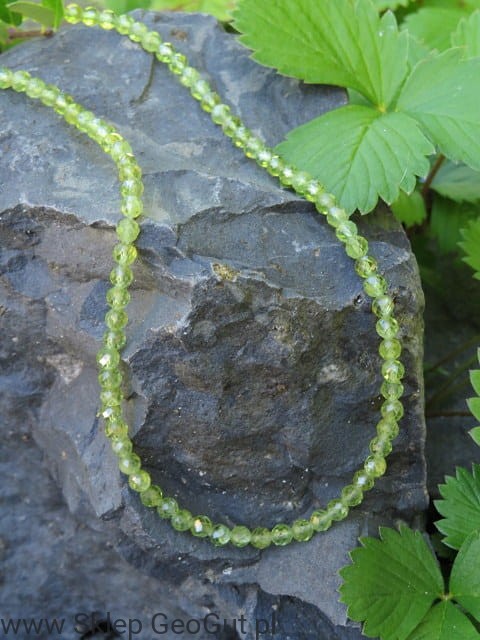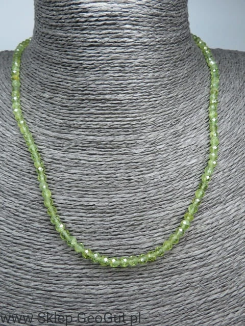 Naszyjnik z naturalnych fasetowanych oliwinów.