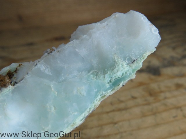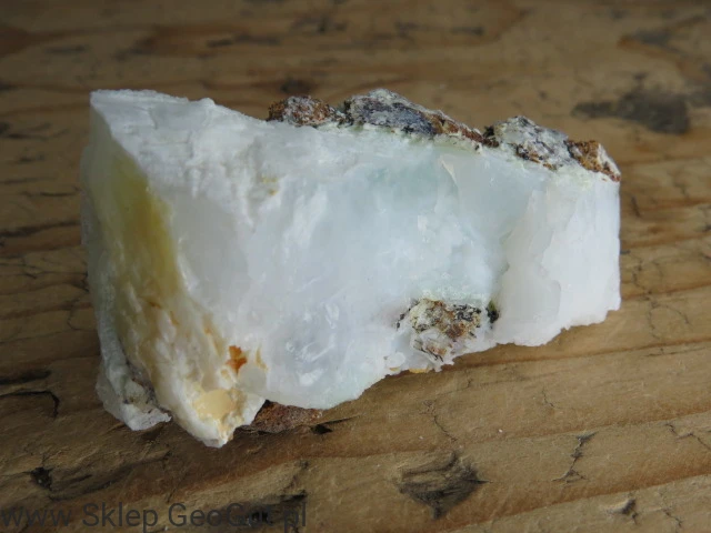 Okaz białego opalu z pimelitem pochodzący z historycznej lokalizacji Szklary na Dolnym Śląsku. Minerał charakteryzuje się jasną, mlecznobiałą barwą. Opale ze Szklar związane są z procesami hydrotermalnymi zachodzącymi w skałach serpentynitowych i stanowią ciekawy element kolekcji minerałów z Polski.