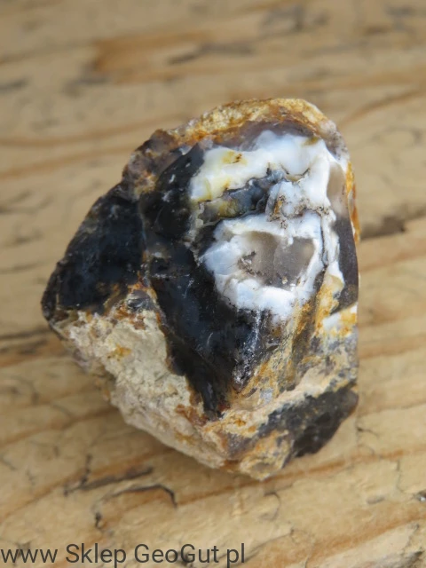 Czarny opal z Brazylii to naturalny minerał kolekcjonerski o wyjątkowym wyglądzie i niepowtarzalnym charakterze. W okazie, obok czarnego opalu, występuje również opal o białej barwie, co nadaje mu jeszcze ciekawszy, naturalny rysunek.
