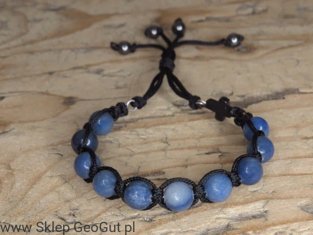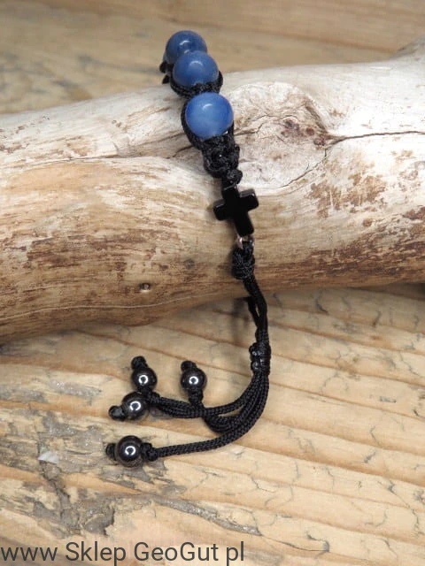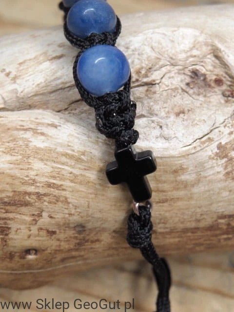 Różaniec z kwarcu niebieskiego * bransoletka pleciona makrama