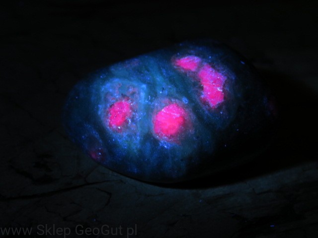 Rubin w fuchsycie - kamień wypolerowany, luminescencja UV