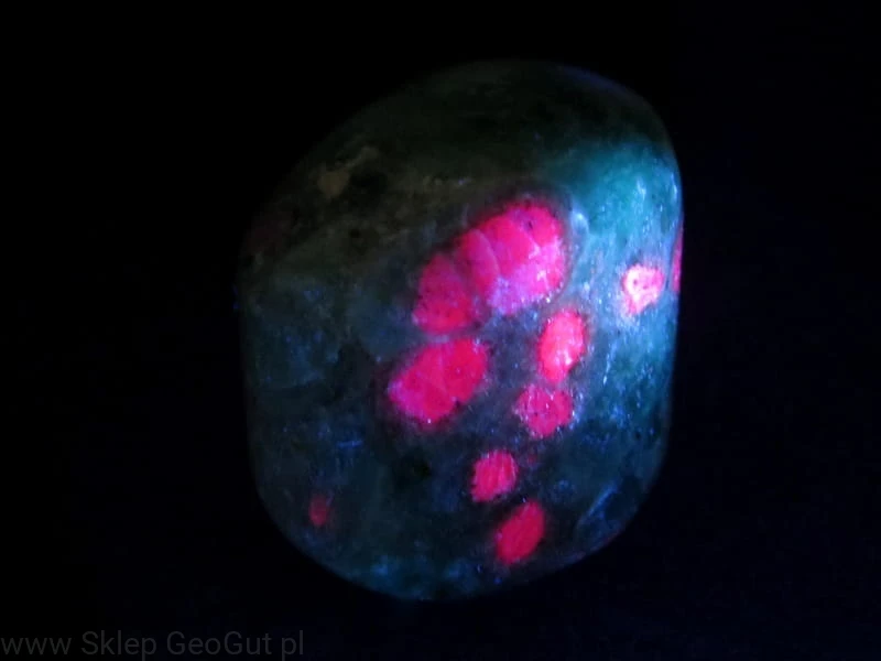 Rubin w fuchsycie - kamień wypolerowany, luminescencja UV