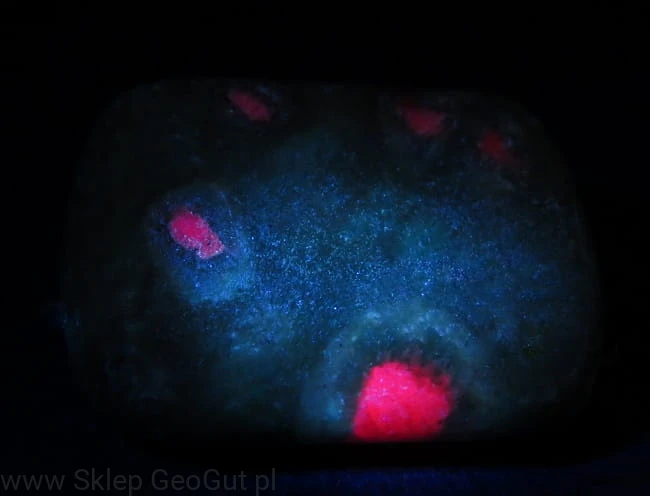 Rubin w fuchsycie - kamień wypolerowany, luminescencja UV