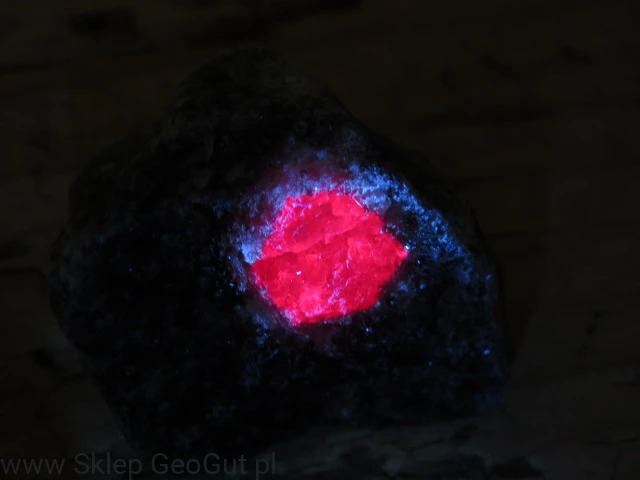 Rubin w zoisycie z Tanzanii – naturalny minerał fluorescencyjny UV